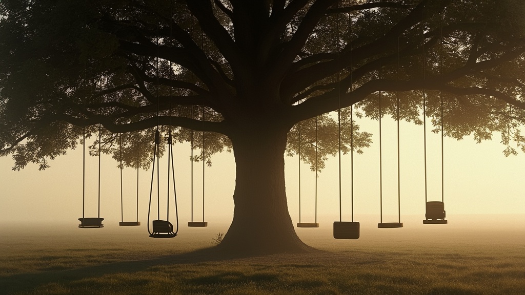 Je me souviens, étant enfant, que mon Père avait installé une balançoire accrochée sur la branche d’un pommier. C’était une simple balançoire faite d’une planche et de deux cordes récupérées de je ne sais où. C’était le symbole d’une enfance libre, spontanée sans complications, sans déformations. Ceci aurait pu être un vieux pneu, ceci importait peu. Le principal était de pouvoir m’amuser. Parce qu’après tout, si la balançoire n’était plus, rien ne m’empêchait de grimper dans l’arbre.