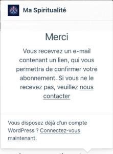 Après avoir validé, la fenêtre ci-dessous s’ouvre. Il n’est pas nécessaire d’avoir un compte WordPress pour recevoir la newsletter.